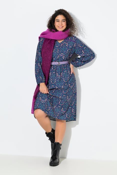 Veliki brojevi Haljina midi dugih rukava moda za punije