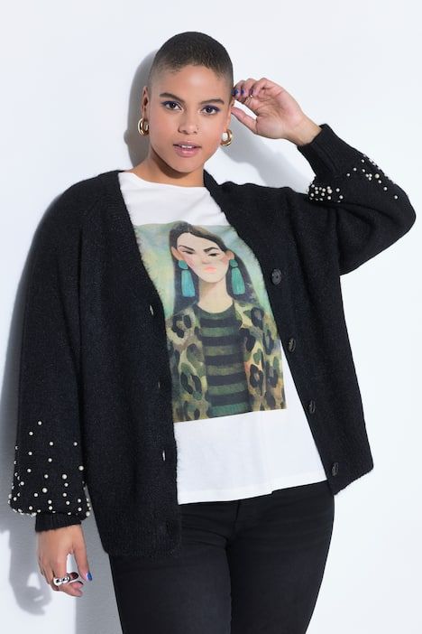 Plus size veliki brojevi Kardigan šireg kroja s perlama za punije